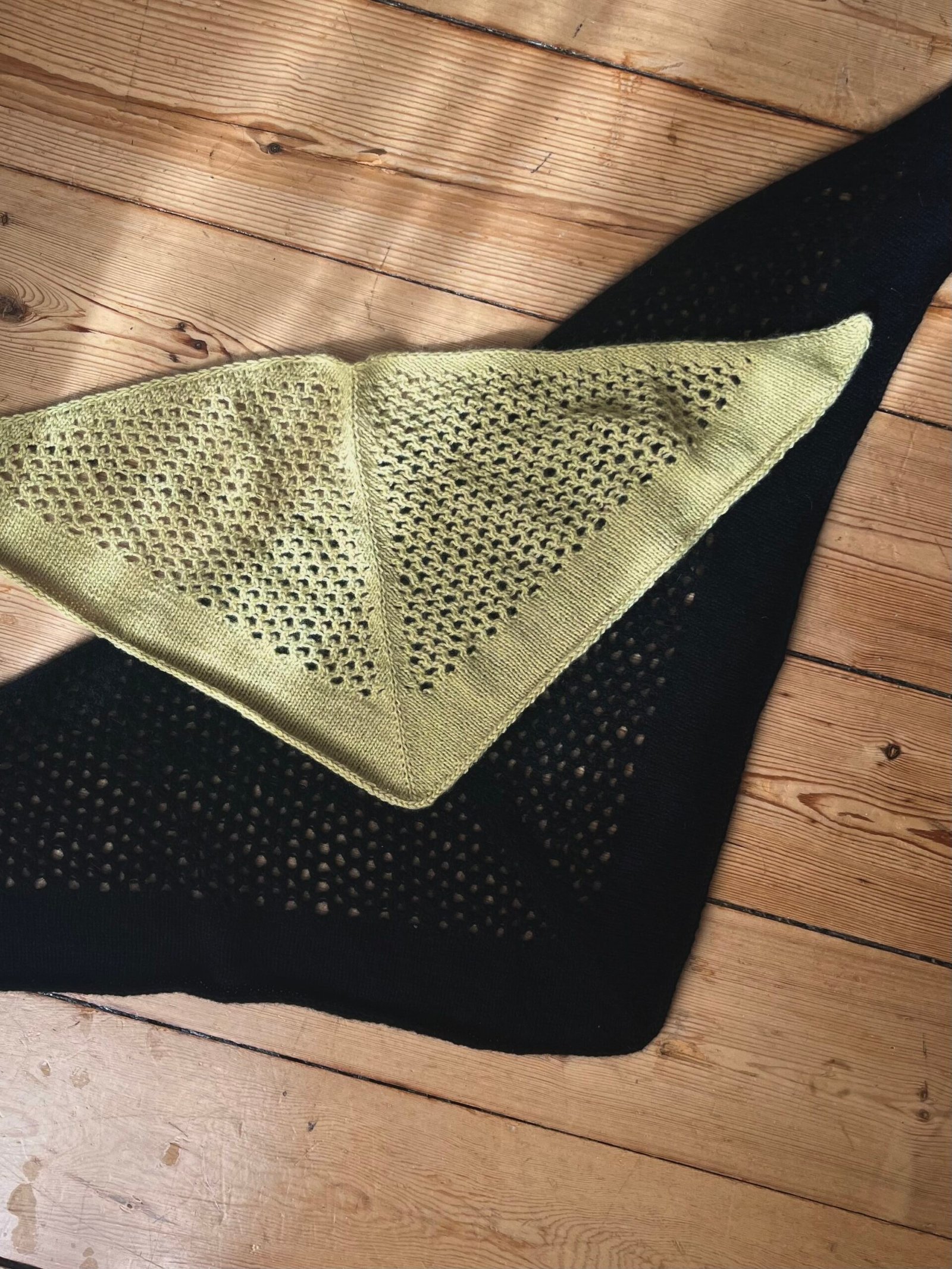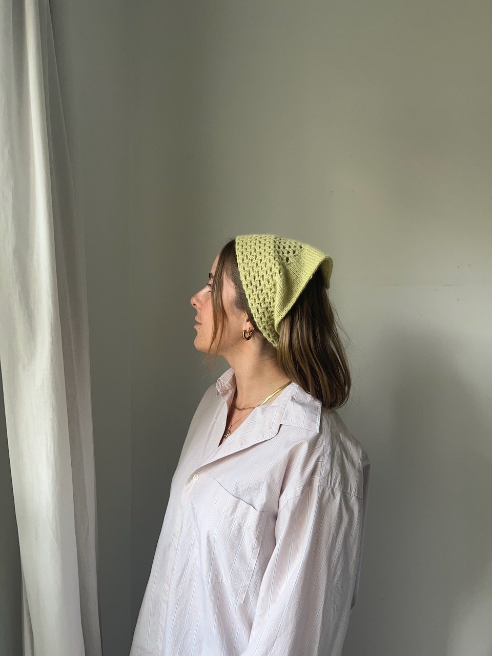 Size guide: The bandana can be worn on the head around the hair or tied around the neck. The scarf can be worn over the shoulders as a small shawl, or wrapped twice around the neck like a regular scarf.